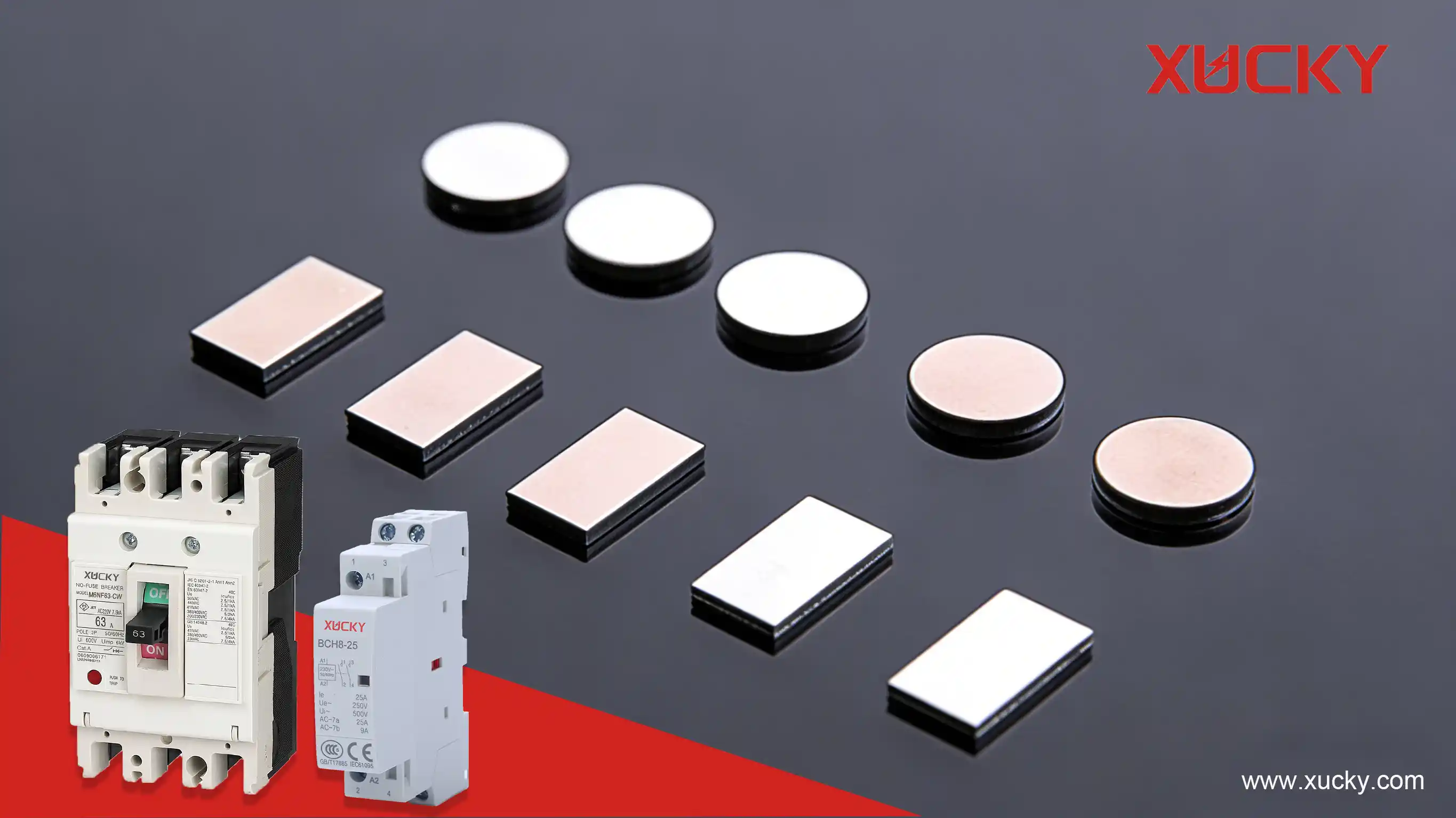 1.Düşük voltaj (≤1kV), düşük akım (≤63A): AgNi (konut MCB'leri) veya AgC (cihaz koruyucuları).